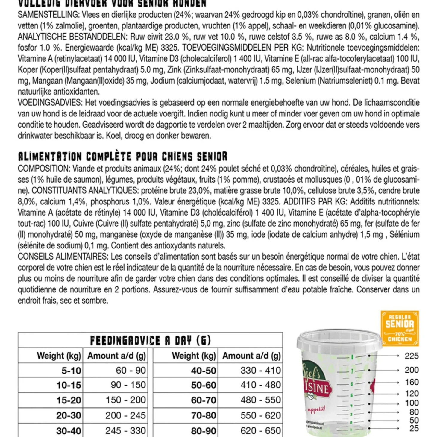 Sjef’s Cuisine Regular Senior is verkrijgbaar in 3 kg en 12,5 kg.