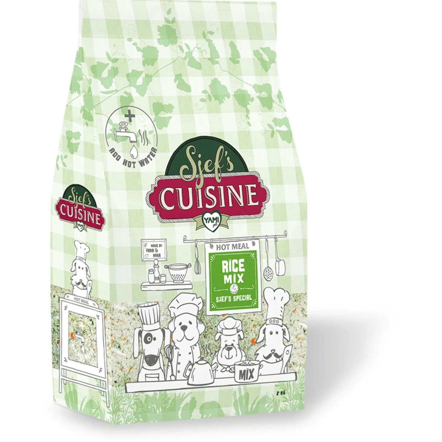 Yamipets adviseert om hun Sjef’s Cuisine-brokken minimaal 2 keer per week af te wisselen met een warme maaltijd uit de Sjef’s Special-lijn, zoals deze Sjef’s Special Rice Mix. Aan deze maaltijd voeg je warm water toe om zo een heerlijke rijst-, pasta- of aardappelvlokkenmix te creëren. Combineer deze maaltijd vervolgens met een lekkere worst of paté en je hebt een super gezonde maaltijd boordevol groente, vocht en natuurlijk vlees!