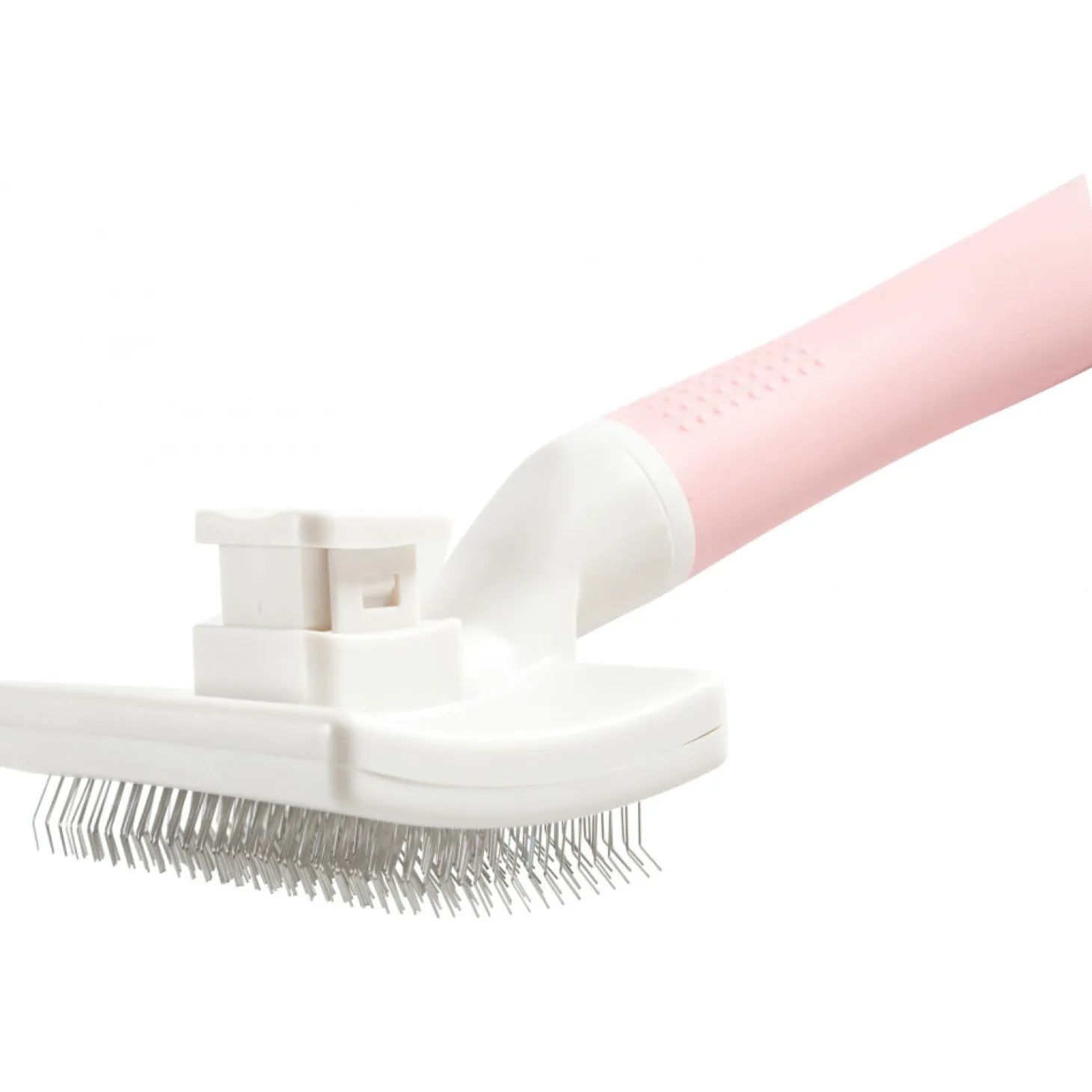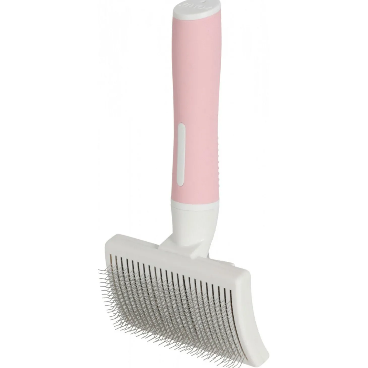 De borstel bevat roestvrijstalen pinnen en heeft een ergonomisch, soft touch handvat voor extra comfort en een goede grip. Met de flexibele, licht gebogen pinnen verwijder je eenvoudig de losse haren in de ondervacht. Gebruik een slickerborstel altijd met mate en borstel niet te veel op dezelfde plek, dit kan de huid van je dier irriteren.