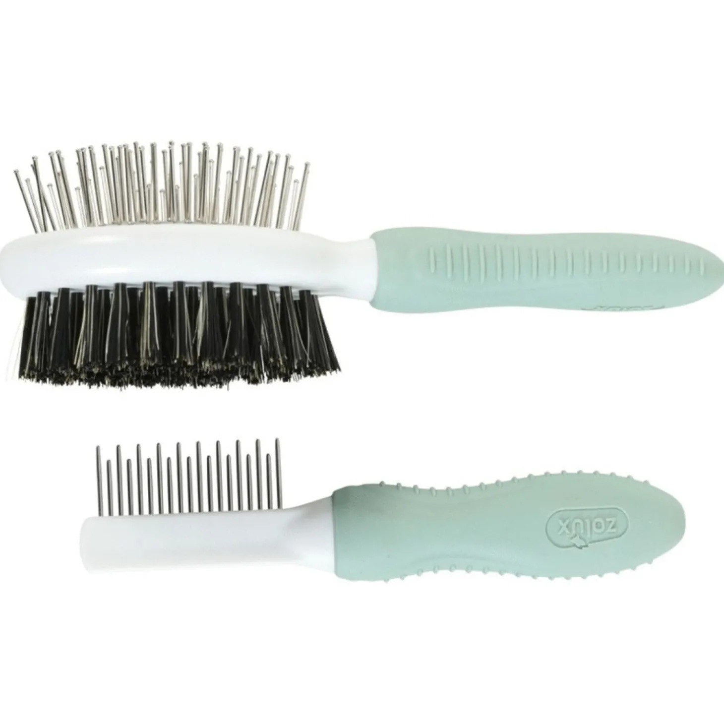 - With its steel pins, the double-sided brush, allows a deep detangling of the coat. It removes dead or tangled hair as well as dander or trapped dirt. With the nylon part, it allows a gentle smoothing of the coat. The simple double-toothed comb gently detangles, removes dead hair and smoothes the coat. Non-slip and ergonomic handles. Validated by a veterinarian. Easy handling. Product bearing the 1% for animals label. 100% recycled cardboard packaging.
